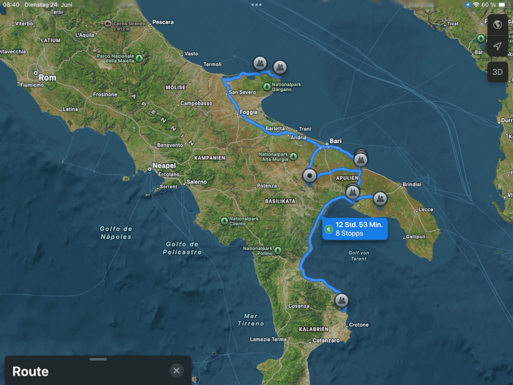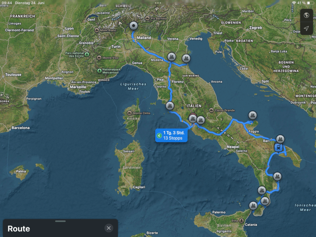 Ich plane schon seit einigen Jahren eine längere Reise zu machen und habe mich im letzten Jahr dazu entschlossen, diese Reise auf Sizilien zu beginnen, Sizilien zu erkunden und mich dann den italienischen Stiefel Richtung Norden hoch zu mäandern …. Tatsächlich hat meine diesjährige Reise dann ein kleines Vorspiel in Form eines Segeltraining mit sechzehn…