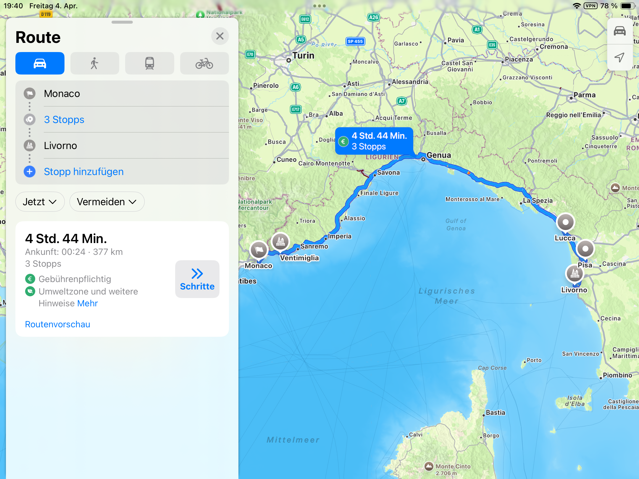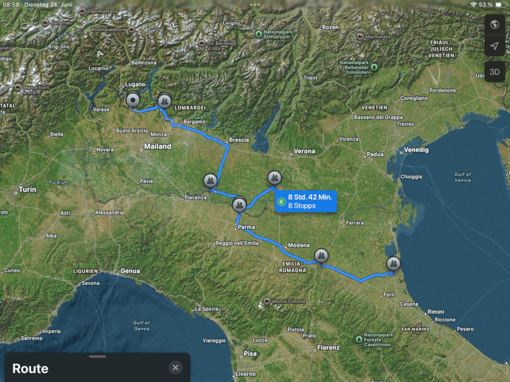 zurückgelegte Routen