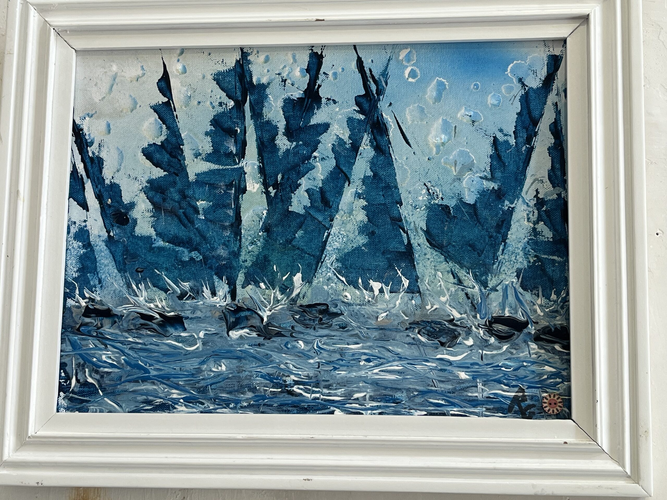 Vorher wandern wir noch bis zum Yachthafen, der aber eher unauffällig ist und geraten im Gemeindezentrum in eine kleine aber feine Ausstellung eines sizilianischen Malers mit Faible für windige Segelbilder.