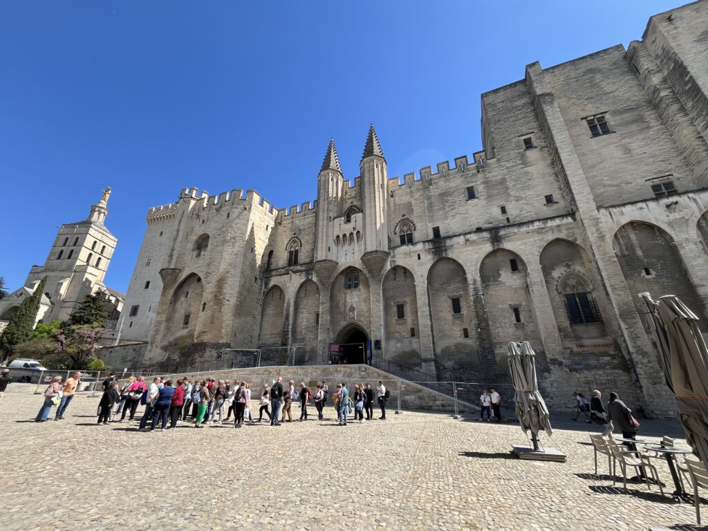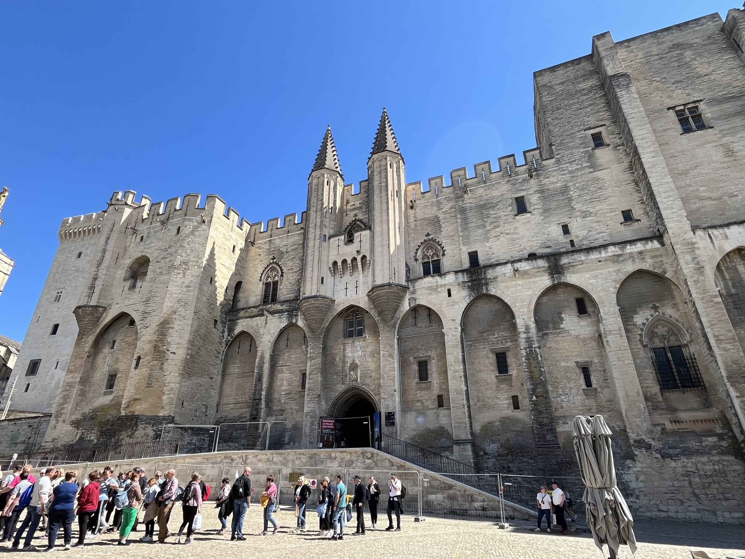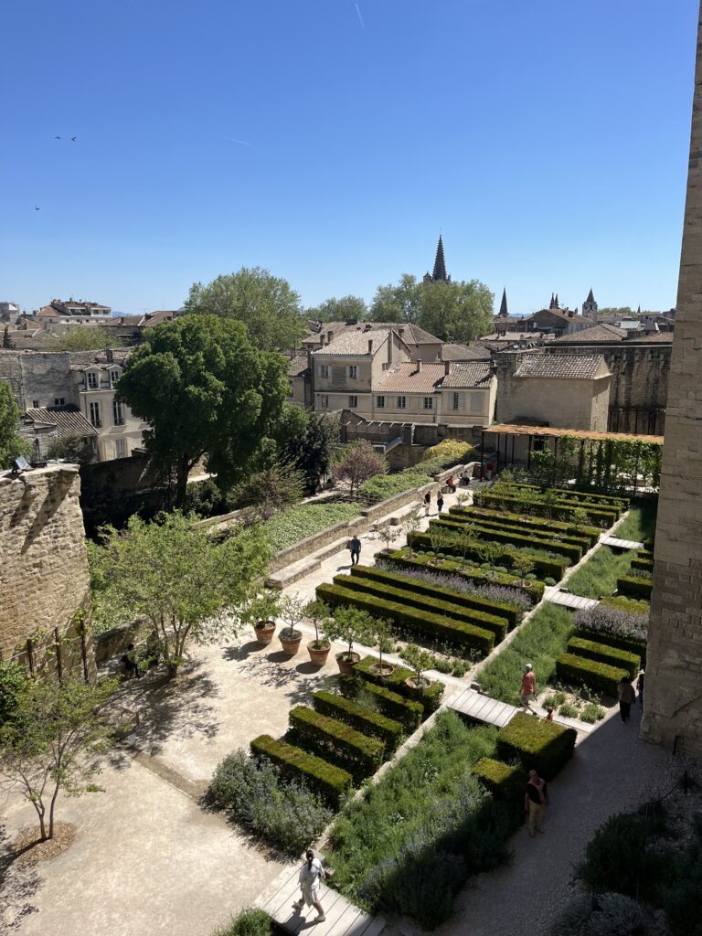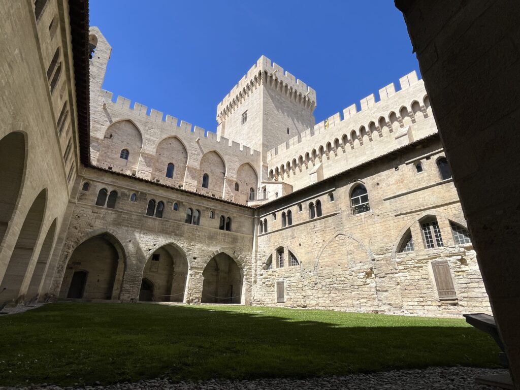 Avignon war im 14. Jahrhundert für einige Jahre Sitz der Päpste https://de.wikipedia.org/wiki/Avignonesisches_Papsttum, und später noch Sitz des Gegenpapstes, (Stichwort abendländisches Schisma) und natürlich hat der Paps sich in Avignon einen recht beeindruckenden Palast bauen lassen, in dem sich Leben und residieren ließ und der speziell in den letzten Jahren aufwändig restauriert wurde und auch einen wunderbaren Garten hat.