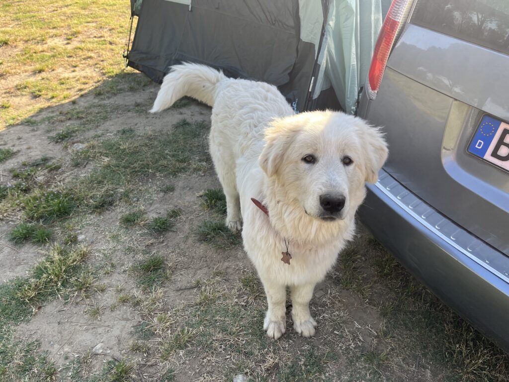 Und ich habe gelernt, ich muss mein Vorzelt unbedingt schließen, dass hat mir der wunderbare weiße Hofhund beigebracht unter Verlust einer Salami und zweier Birnen … meine Turnschuhe habe ich zurück erobert.